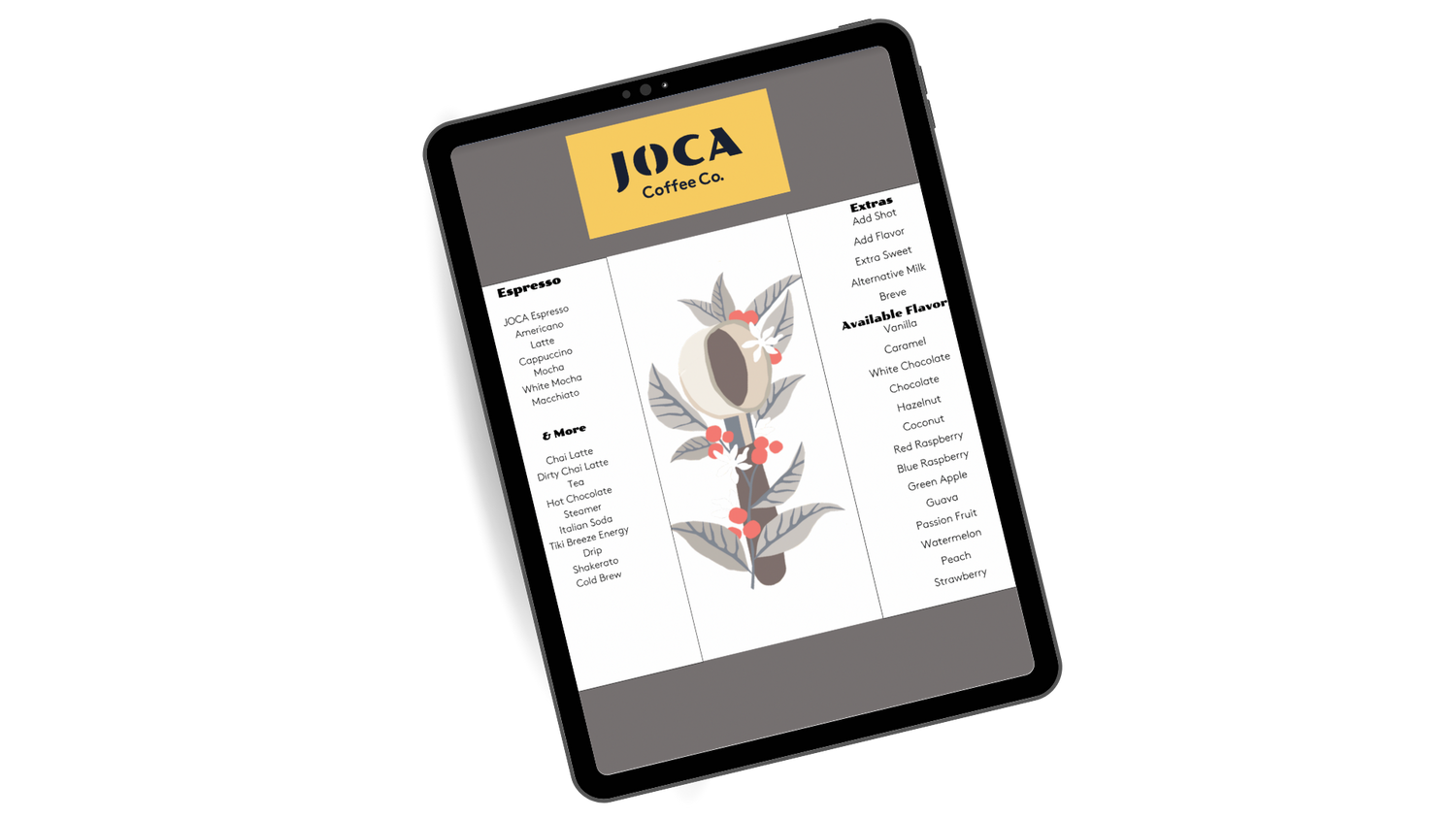 SAMPLE MENU ITEMS INCLUDED:LATTES, MOCHAS, CAPPUCCINOS, ITALIAN SODAS, ENERGY DRINKS NITRO COLD BREW.